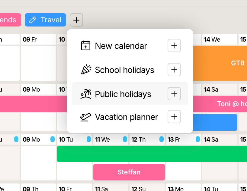 Add public and school holidays automatically